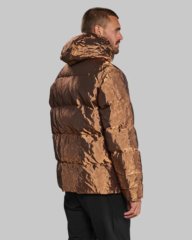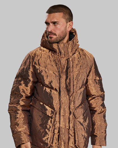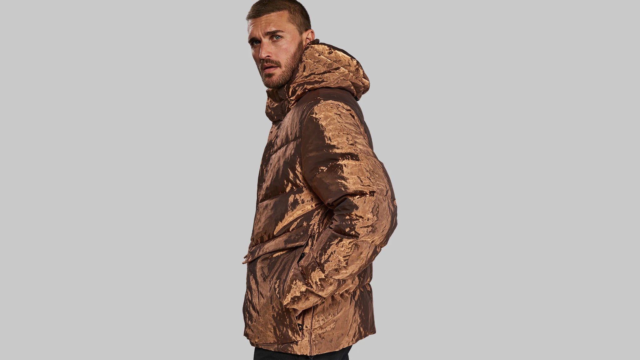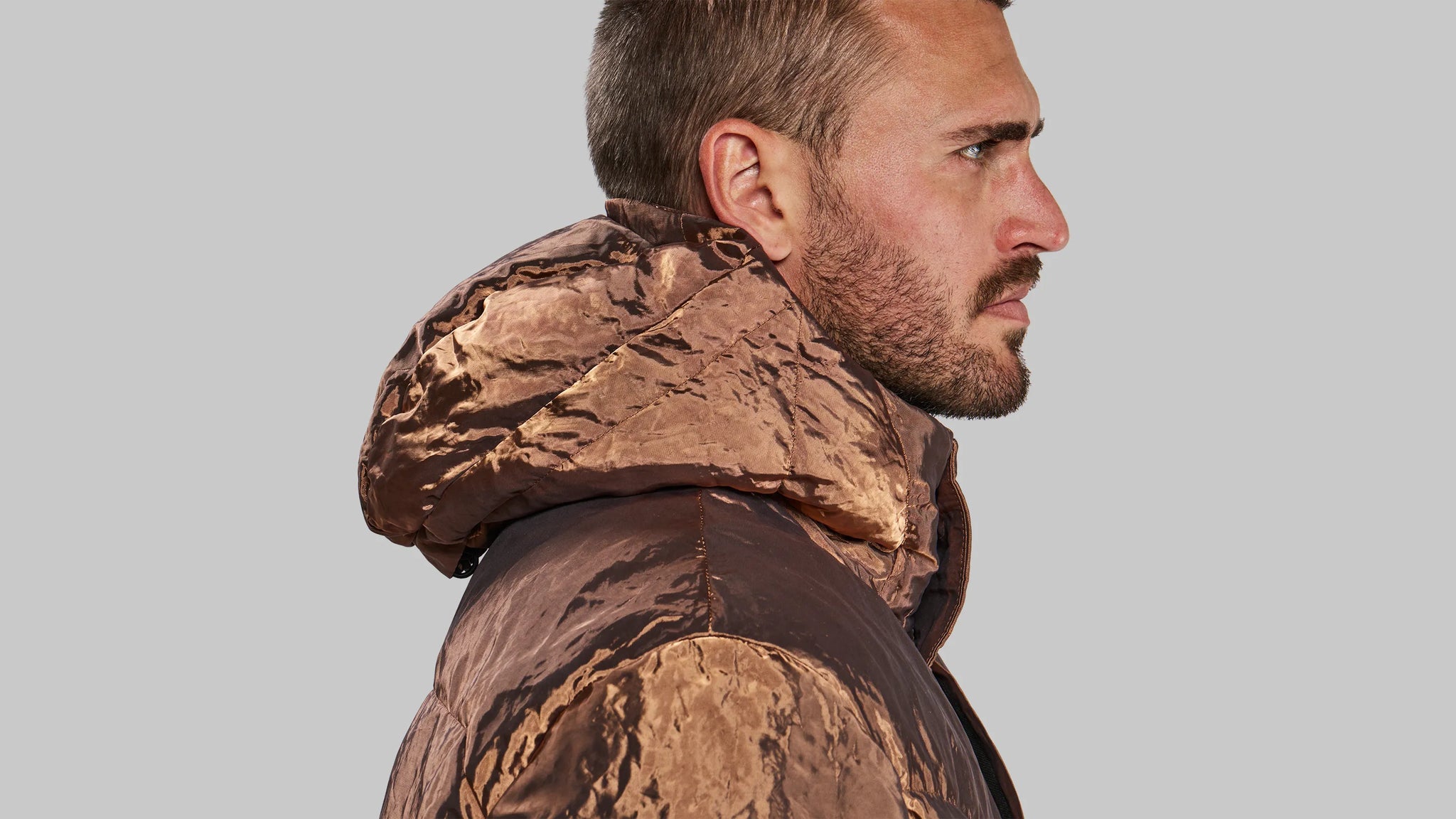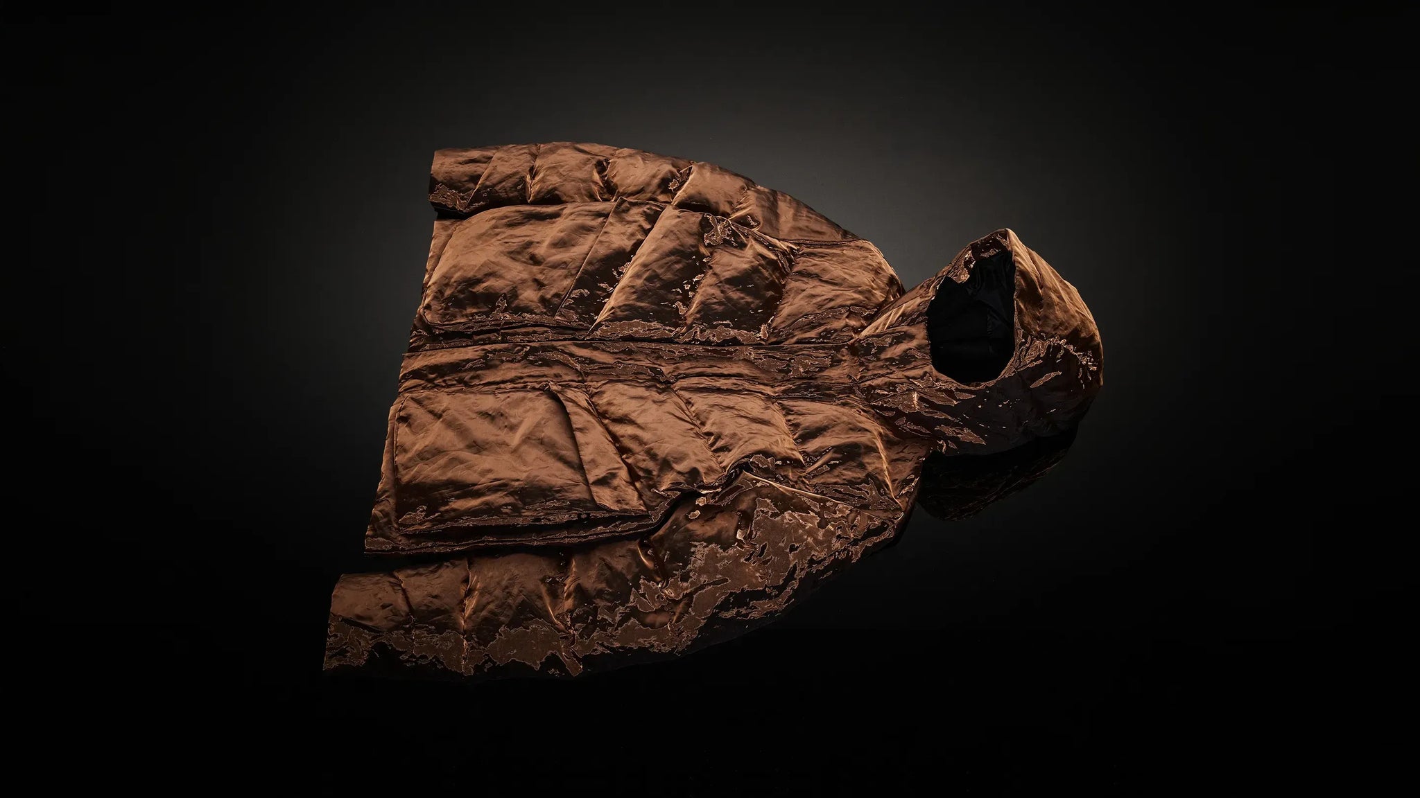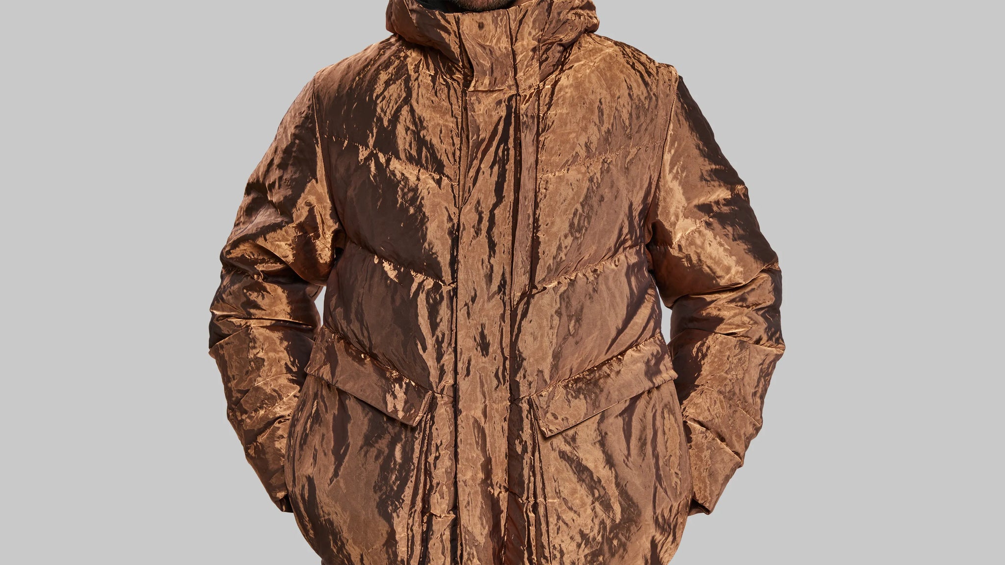 There’s a reason this is the first puffer to be built mostly from metal – and that’s because metal is designed to be strong, not malleable. But copper is different. Its atoms are arranged in something called a ‘face-centred cubic crystal structure,’ which makes it extremely strong but also malleable at the same time. And this is what allows us to create a 3 layered jacket that combines a soft inner layer, a high-performance waterproof membrane that opens and closes in the heat, and an outer layer built from lacquered copper yarn.