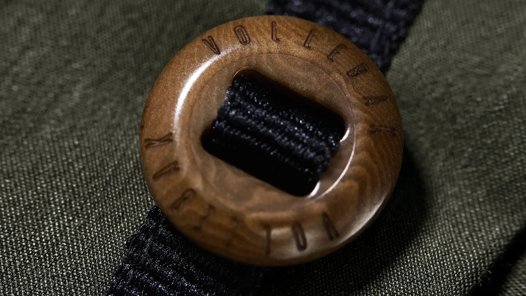 Each button is made of buffalo imitation bioresin – a natural, non-toxic and water-based material we’ve produced by combining plant and vegetable waste with a polyester resin used by the aerospace industry. Lightweight and heat resistant, all the buttons are sculpted with a highly polished 30 degree taper towards the edges to make them extremely easy to slip into place.