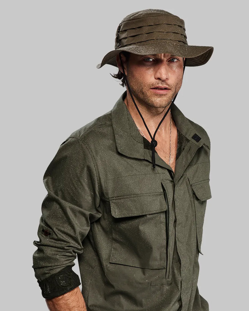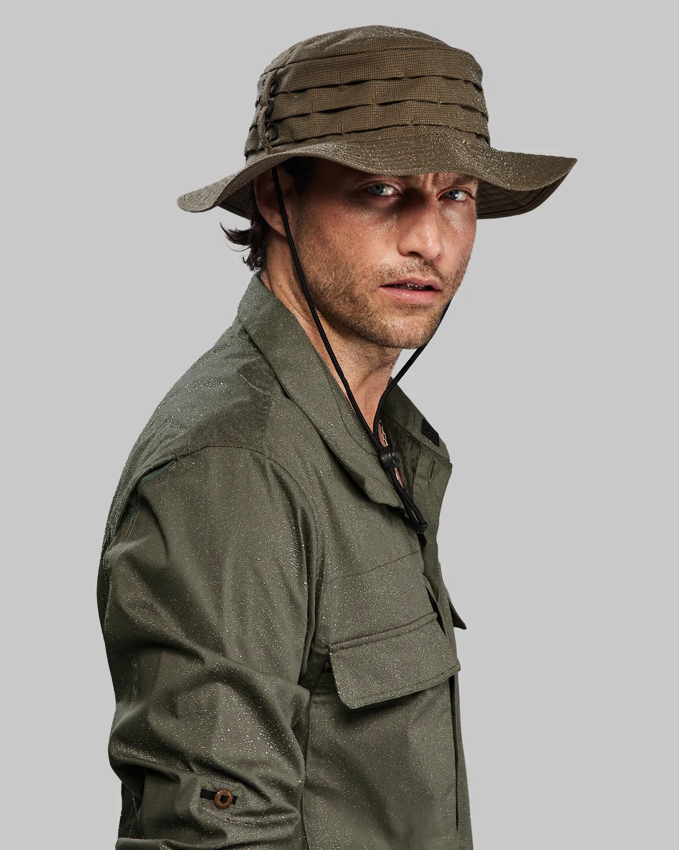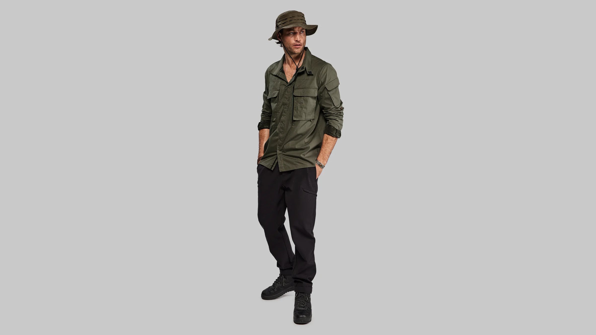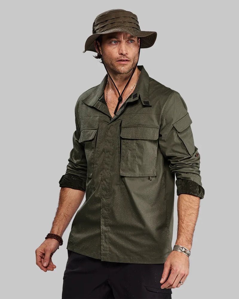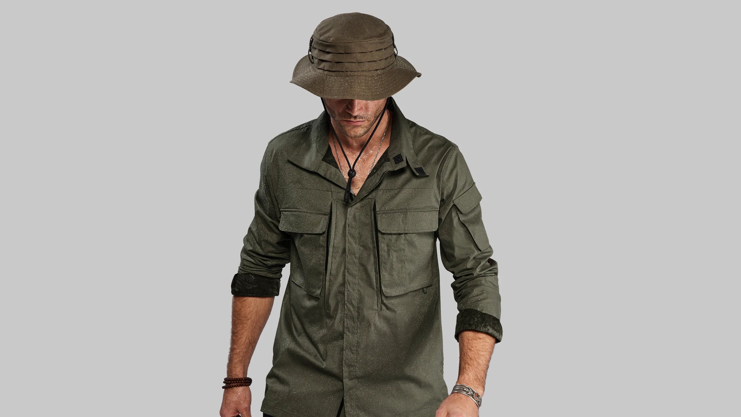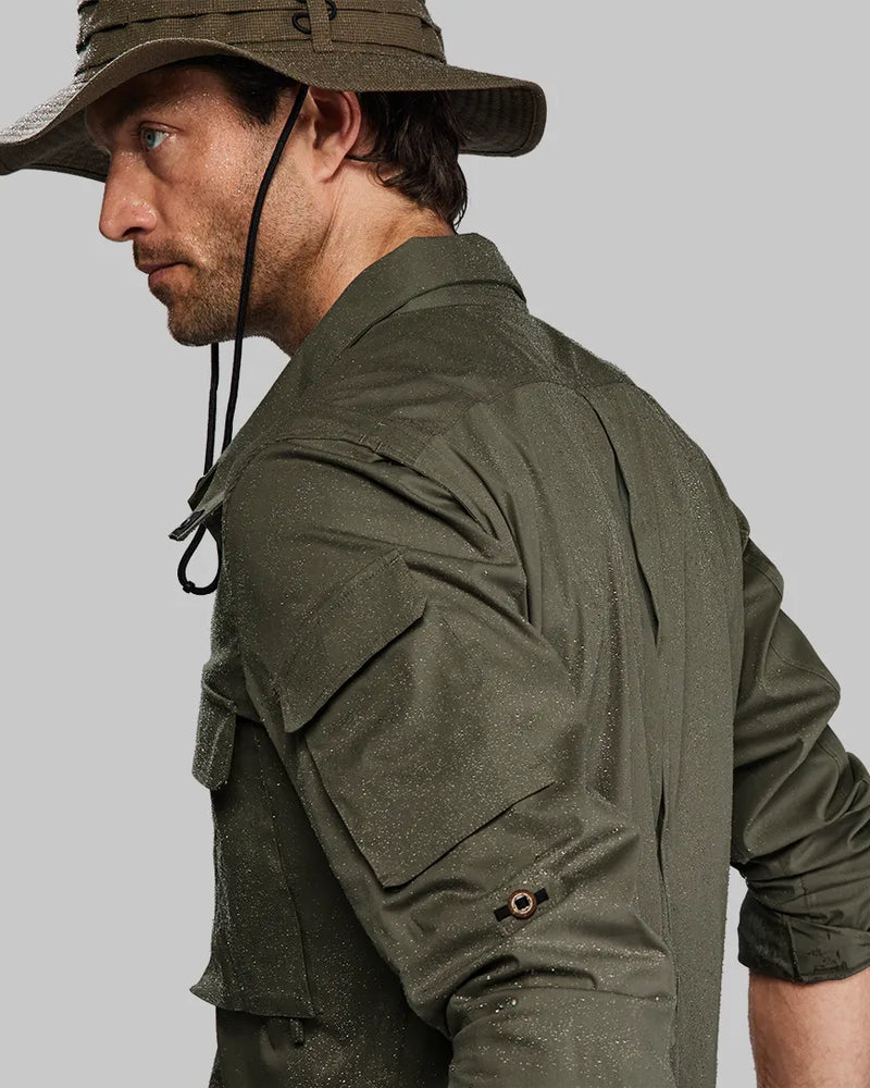 There are over 510 million square kilometres on the surface of Earth, and this shirt is designed to work in every single one of them – with a reinforced anti-mosquito collar for the jungle, 7 concealed air vents that work like in-built air-con for the desert, a hidden passport pocket for hostile environments, 9 gadget loops for the mountains, and over 62 metres of reinforced stitching.