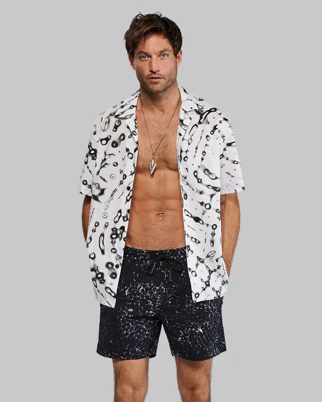Today we’ve brought this invisible architecture of sound to clothing, just like Nikola Tesla would have wanted. We’ve worked with experimental filmmaker Josef Gatti who works with water and oil to capture the pulsating patterns created by sound waves and harmonic resonances in 6K. And we’ve used these to create high-tech Cymatic Swim Shorts that are insanely elastic and made from bioceramics to help cool you down.