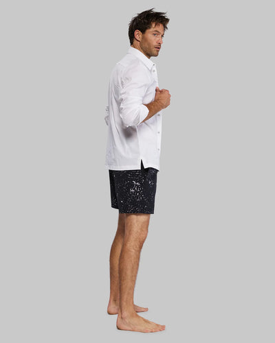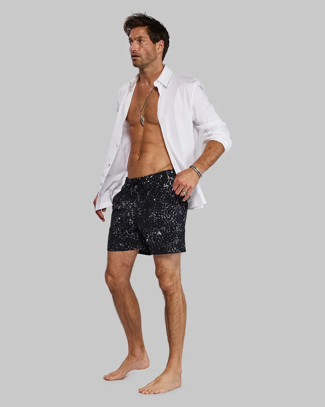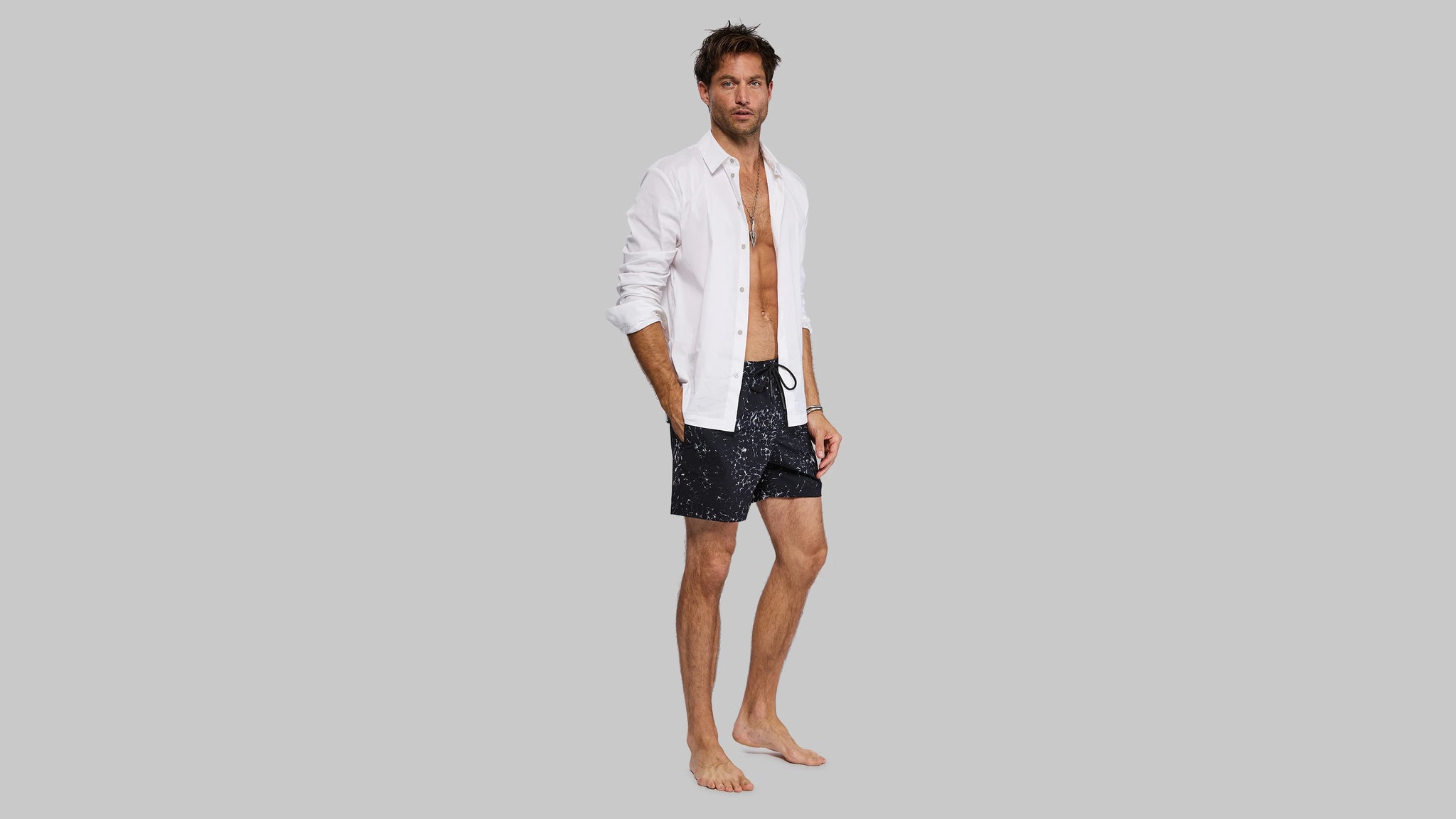 The materials we’ve worked with are tested and protected against degradation caused by both saltwater and chlorine. So they’re built to handle long days out in the water, whether that’s at the pool or somewhere deep in the Pacific Ocean. But they work just as well out of the water too. Their minimalist cut, soft material, practical pockets and secure rope-tied waistband mean they work just as well on land.