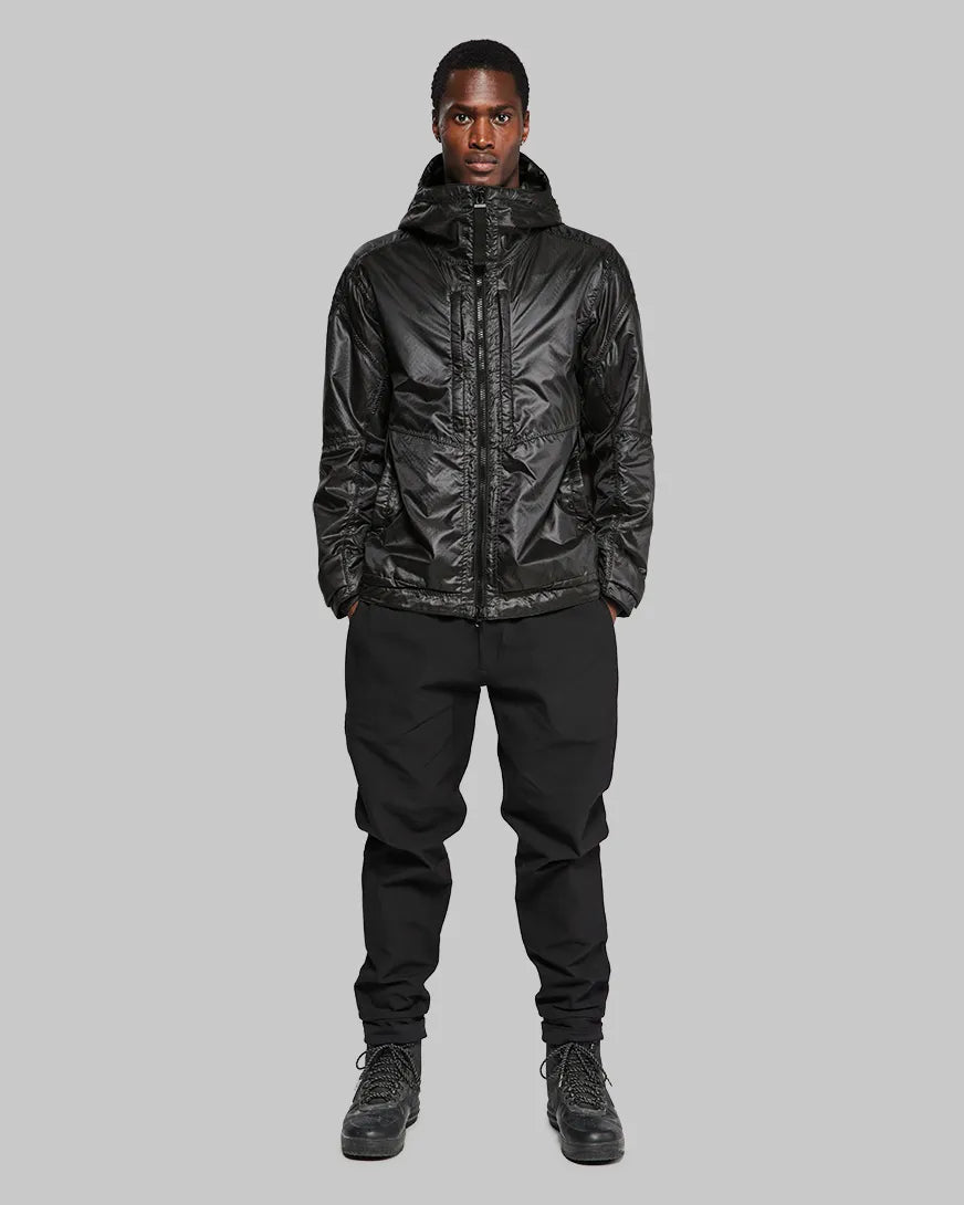 The peaked hood is lined with aerogel insulation just like the rest of the jacket and tightens with a cord adjuster at the back. The cuffs tighten with metal snaps to create a seal around your wrists, while the hem can also be tightened with cord adjusters to prevent cold air from getting in at your waist. And the two-way front zipper comes fitted with an oversized pull cord so it’s easy to grab even when you’re wearing thick gloves.