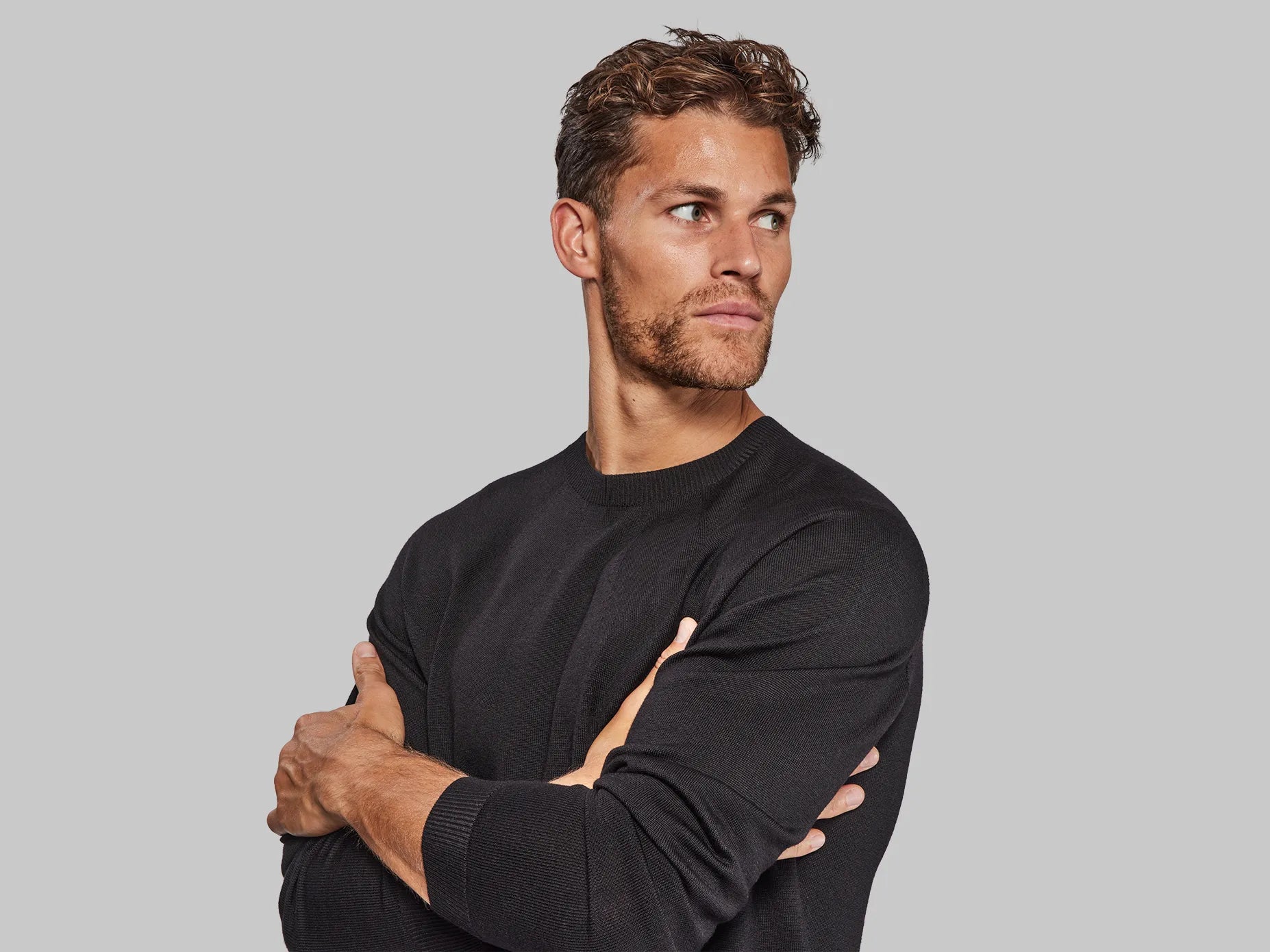 The sweater is incredibly smooth and soft against your skin, so won’t scratch you or itch like wool sweaters can. The softness and seamless construction mean you can wear it on its own if you’re looking to go fast and light. Or it works great as a layering piece during colder months. Merino and cashmere are also naturally elastic so it’s not going to create any resistance.