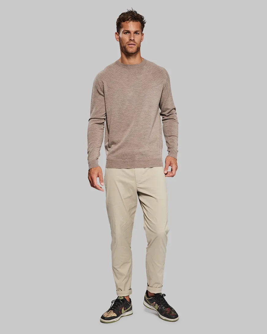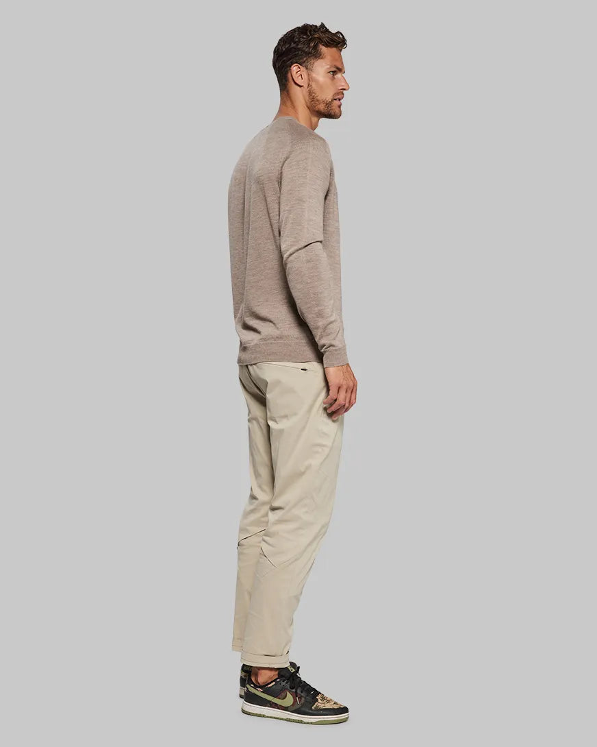 The sweater is incredibly smooth and soft against your skin, so won’t scratch you or itch like wool sweaters can. The softness and seamless construction mean you can wear it on its own if you’re looking to go fast and light. Or it works great as a layering piece during colder months. Merino and cashmere are also naturally elastic so it’s not going to create any resistance.