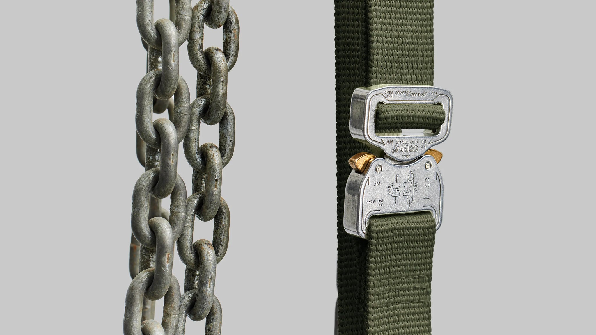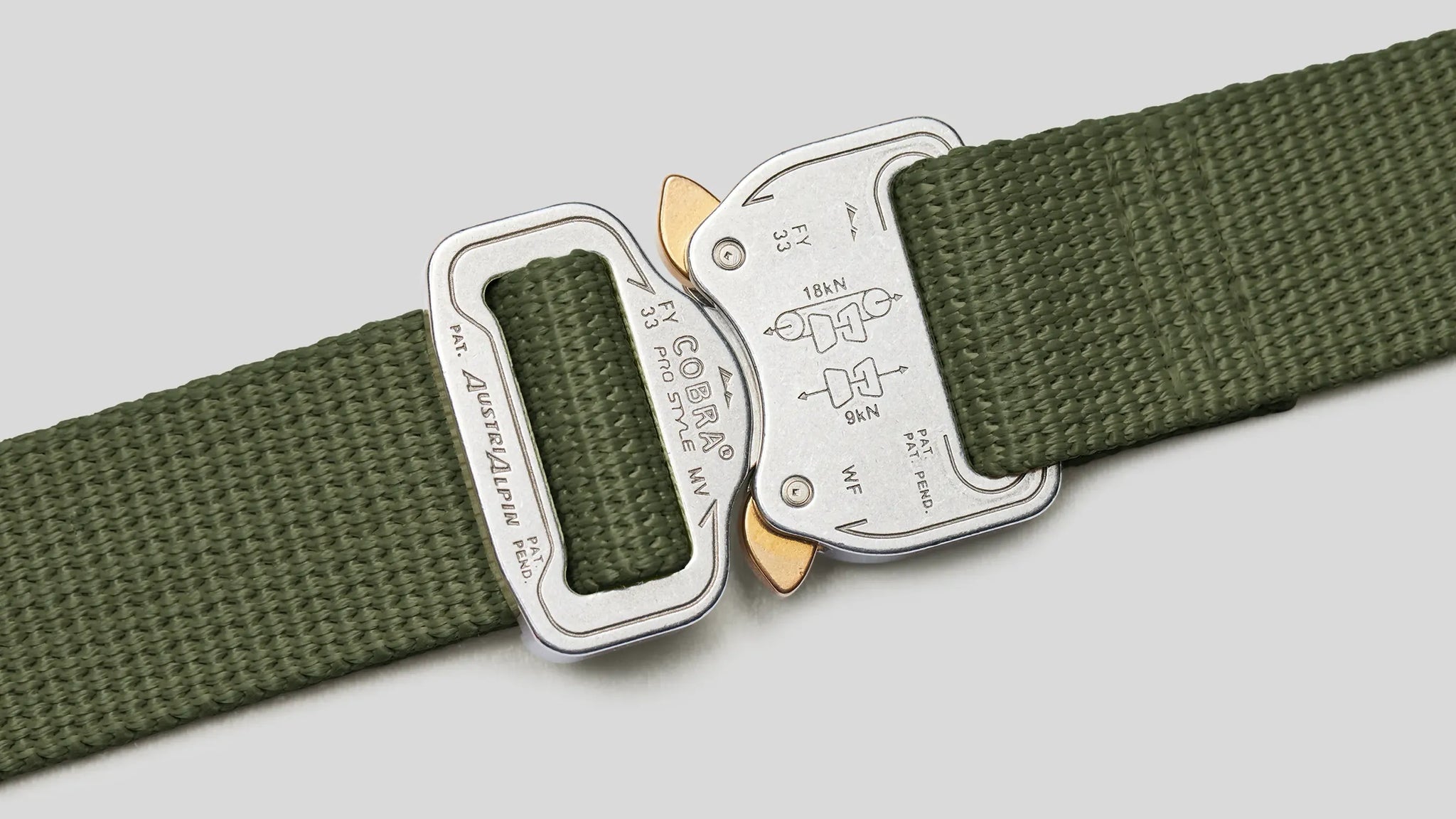 Built from a high-strength aluminium the buckle is designed to hold extreme weight without bursting open. It’s engineered with a patented locking mechanism which means it’s impossible for the buckle to release under tension, even if you try pushing the clips inwards. And when it’s in ‘loop configuration’, which means with the strap attached, it can withstand 18 kilonewtons of force before breaking. Which is about 1.8 tonnes.
