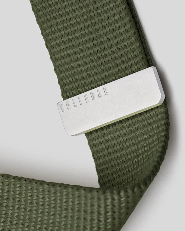 The buckle comes with a cut-out on the back to prevent the build-up of dirt, dust, ice and snow, and the release clips are ergonomically shaped so they’re easy to use at speed. The metal end on the strap is made by Riri, an historic Italian manufacturer famous for its high-spec metal components. It comes engraved with Vollebak detailing on both sides. And while belt ends are typically just clamped onto the strap, we’ve secured ours with screws for strength. Every belt is assembled by a small, high-end belt manufacturer in London.