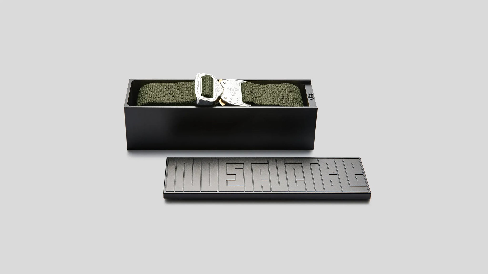 The belt comes in its own custom case, built from anodised aluminium 6082T6, a corrosion resistant metal often used for high stress engineering applications like building bridges and cranes. The case is milled with a highly precise 5 axis CNC (Computer Numerical Control) milling machine, and is fitted with a hidden 3D-printed latch made from Nylon PA12.