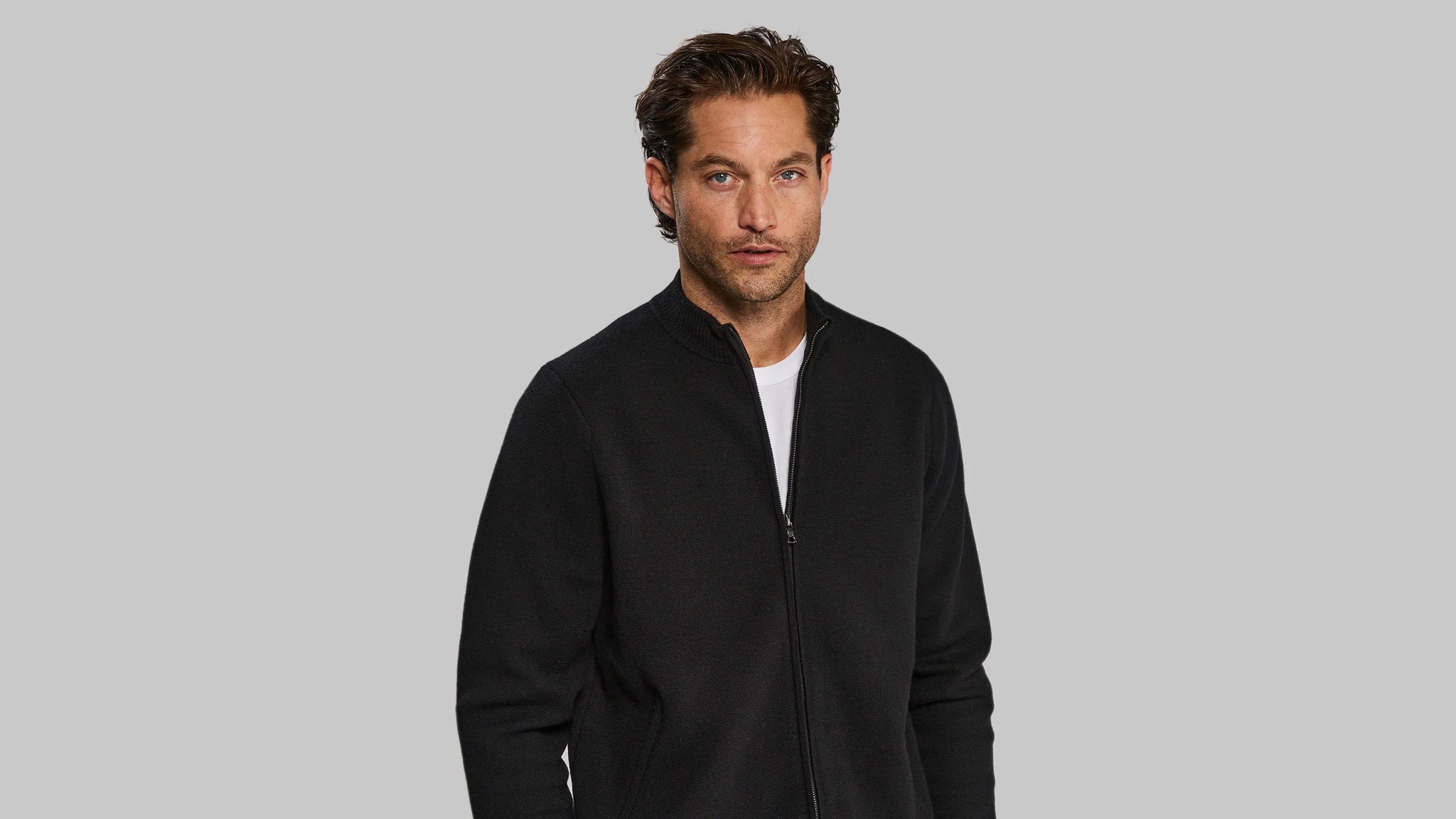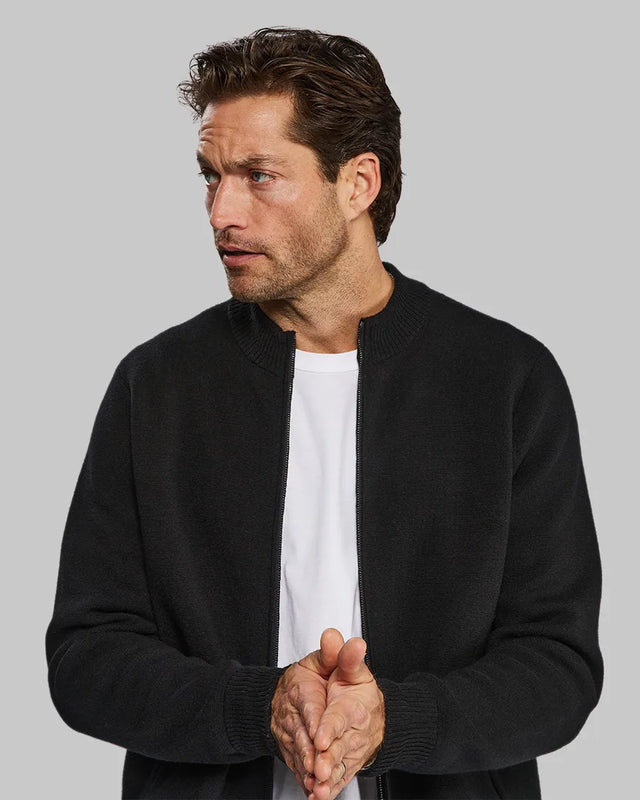 Tailored like a jacket, but with the softness and the weight of a cardigan.