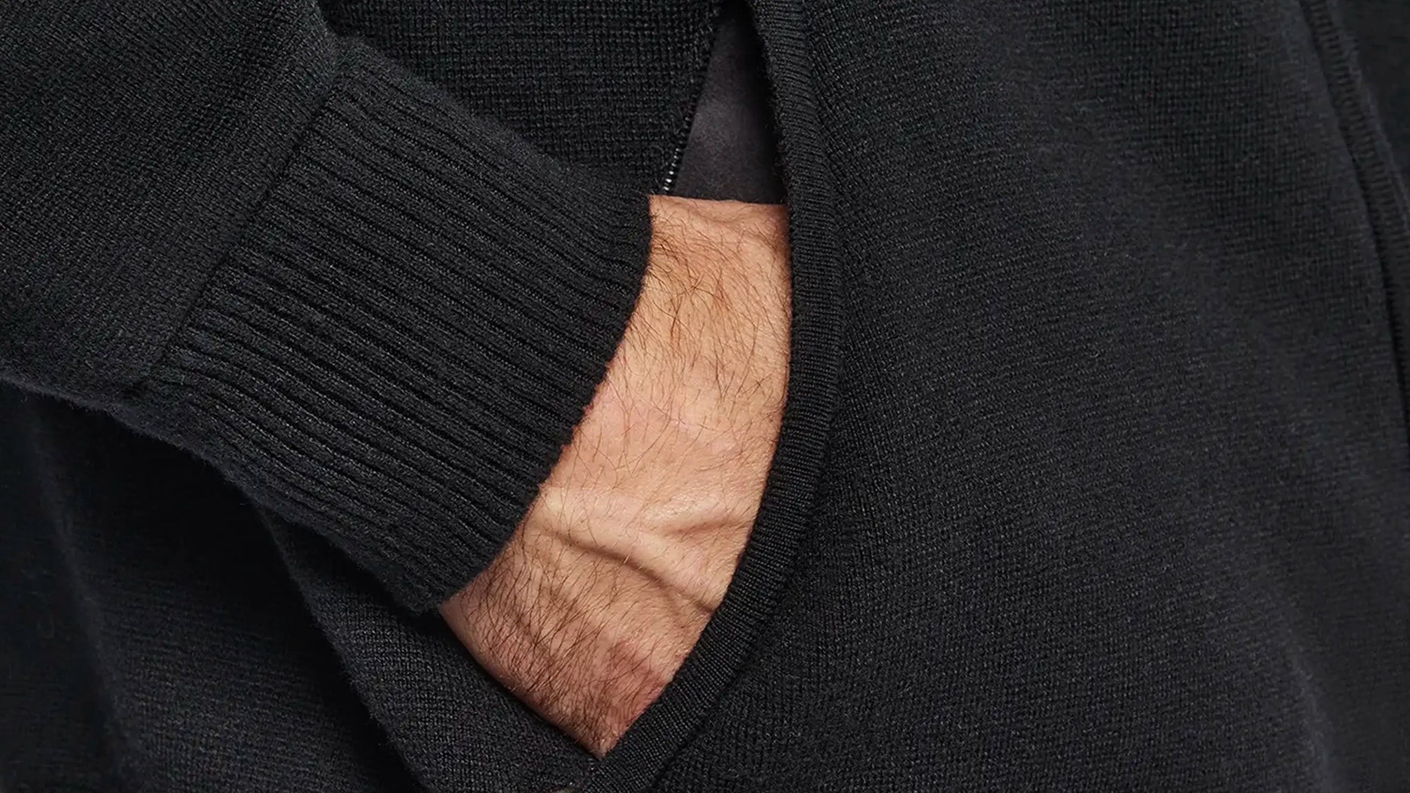 The cardigan has two zipped side pockets that are anchored into the structure of the cardigan rather than being a decorative afterthought – so they can actually carry weight without sagging or bulging. And the insides are reinforced and finished with Alcantara lining for long-term durability.