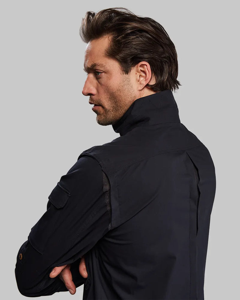 Working down from the collar you’ll find a giant hidden air vent that runs almost the entire length of your spine. Designed for hot, humid, or arid environments it’s one of 7 concealed air vents in the shirt that work together like in-built air-con. Each vent opens and closes either with body movement or with zip closures. And we’ve built them in the places you’re likely to sweat most – down the centre of your spine, your armpits, down the centre of your chest, and around your waist.